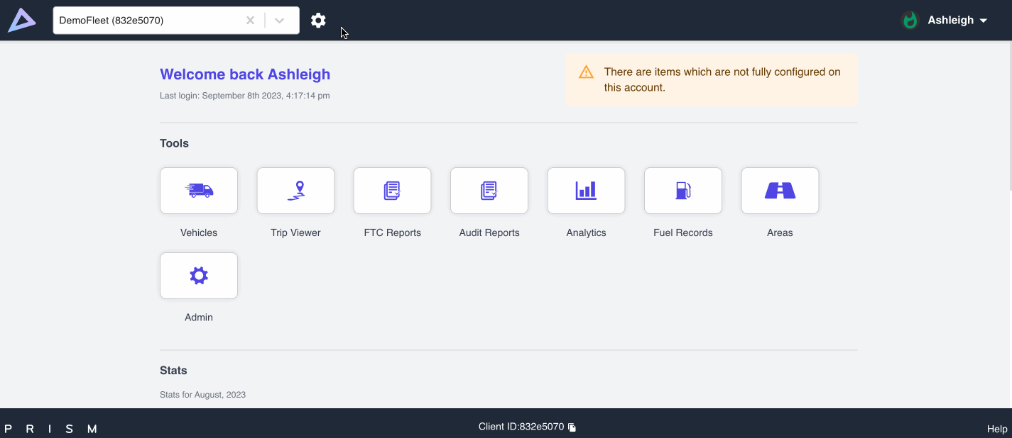 GPS data calculations can be refined in Prism using client settings. Client Settings are controls that allow you to specify how Prism operates in various ways. FTC Report Delivery settings let you specify who should receive emailed monthly reports.