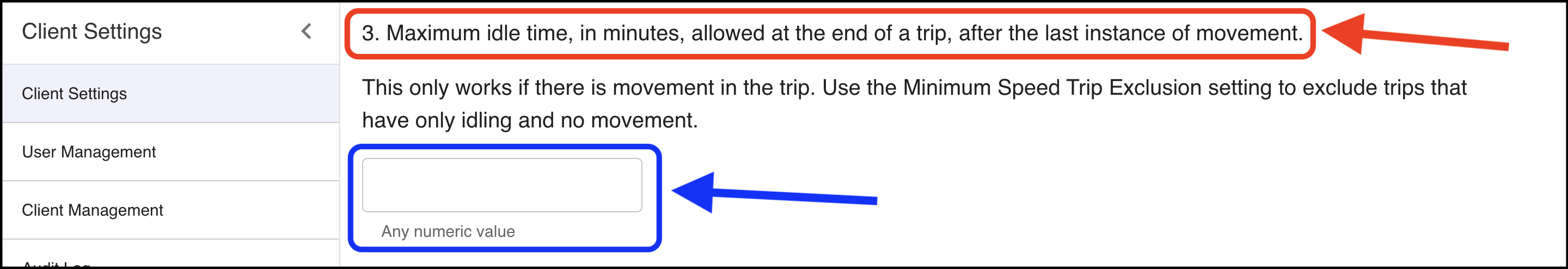 Go to 3. Maximum idle time, in minutes, allowed at the end of a trip, after the last instance of movement.