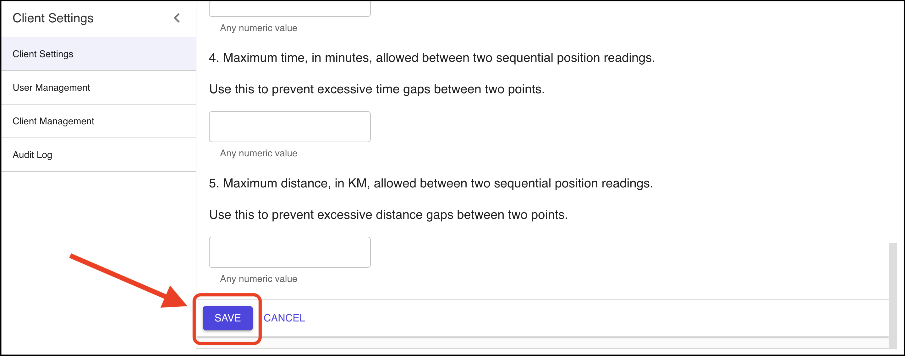 5. Maximum distance, in KM, allowed between two sequential position readings.