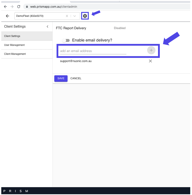 You can manage who receives your monthly FTC Reports in the Prism settings. To do this you will need to log into the Prism web app.