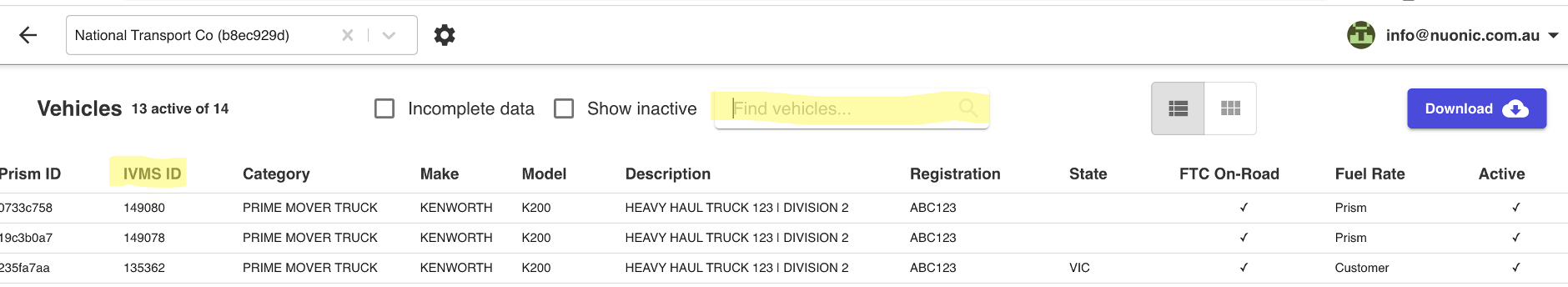 Your telematics provider has added another device to your account. Prism has picked this new vehicle up. *If you haven’t added a new vehicle to your fleet, record the IVMS ID of the extra vehicle and advise your telematics provider.