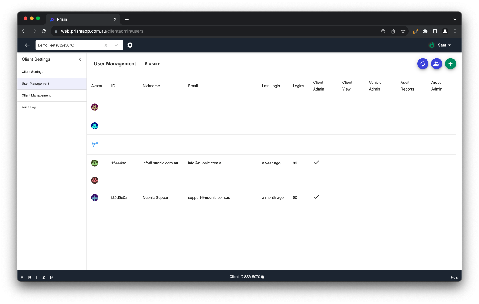 Select User Management. This will open a complete list of users who have access to your Prism account. Next to each user, will show their access level. You may also please refer to the table below for further information on access: