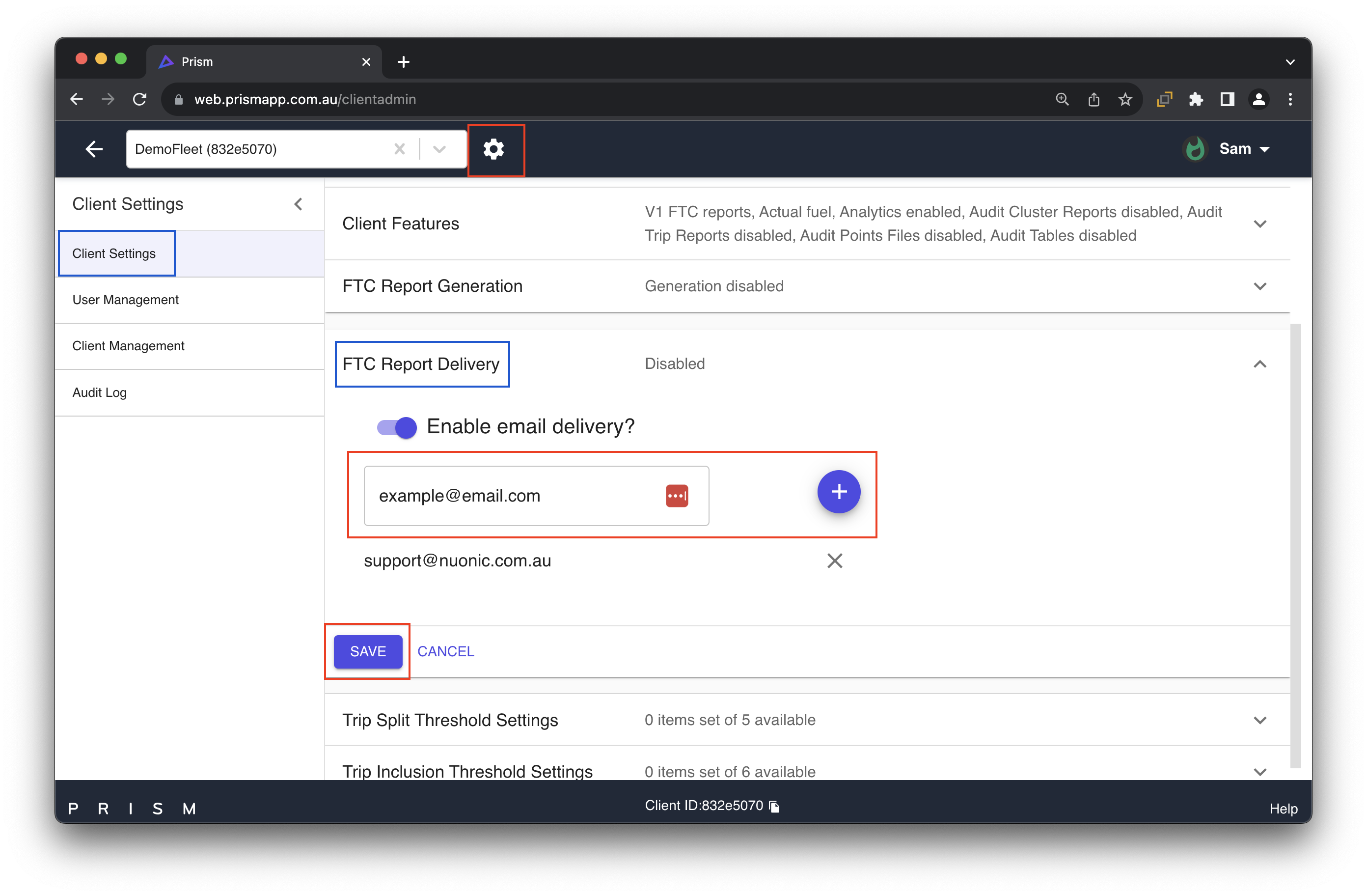 You can manage who receives your monthly FTC Reports in the Prism settings.
