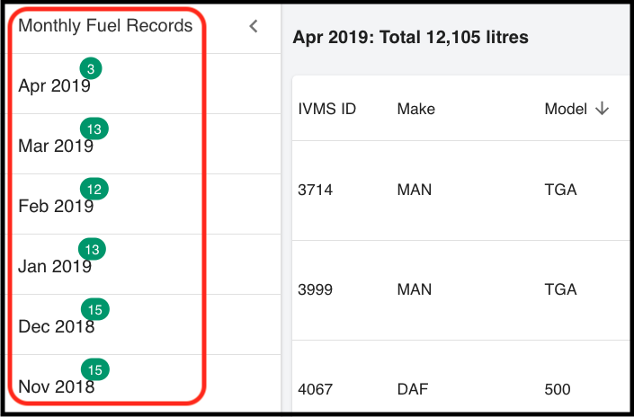 You can view each month of reporting by clicking on a month under Monthly Fuel Records.