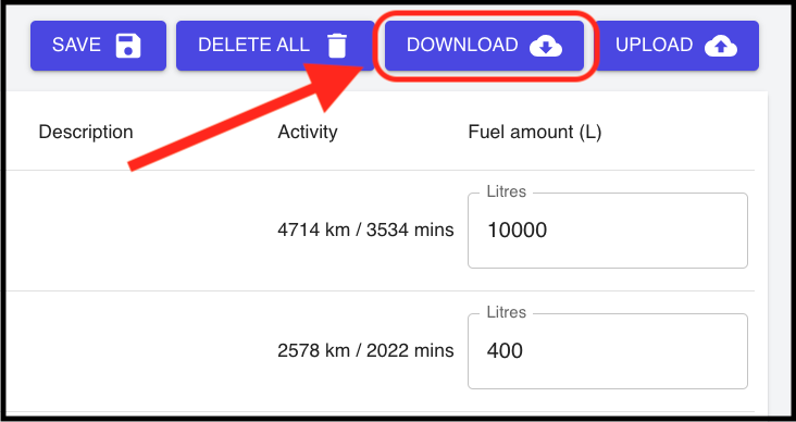 Use this feature to download the fuel records into an Excel spreadsheet.