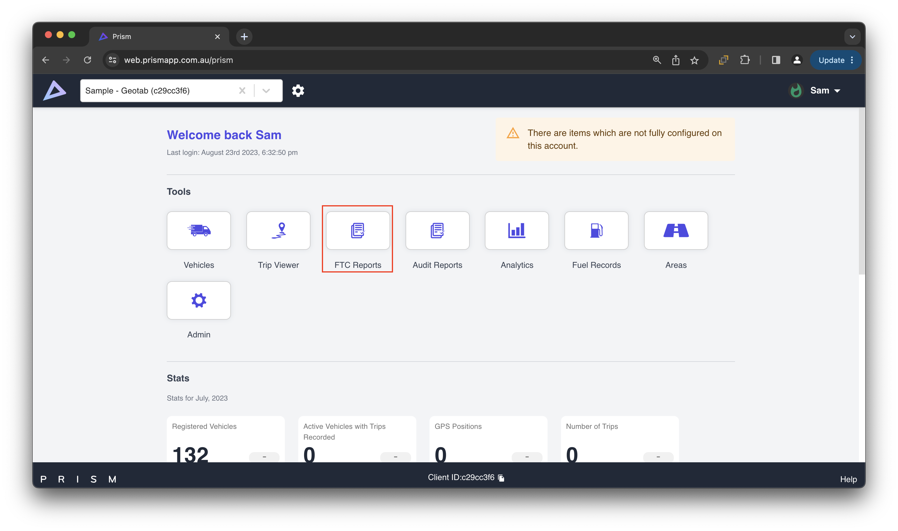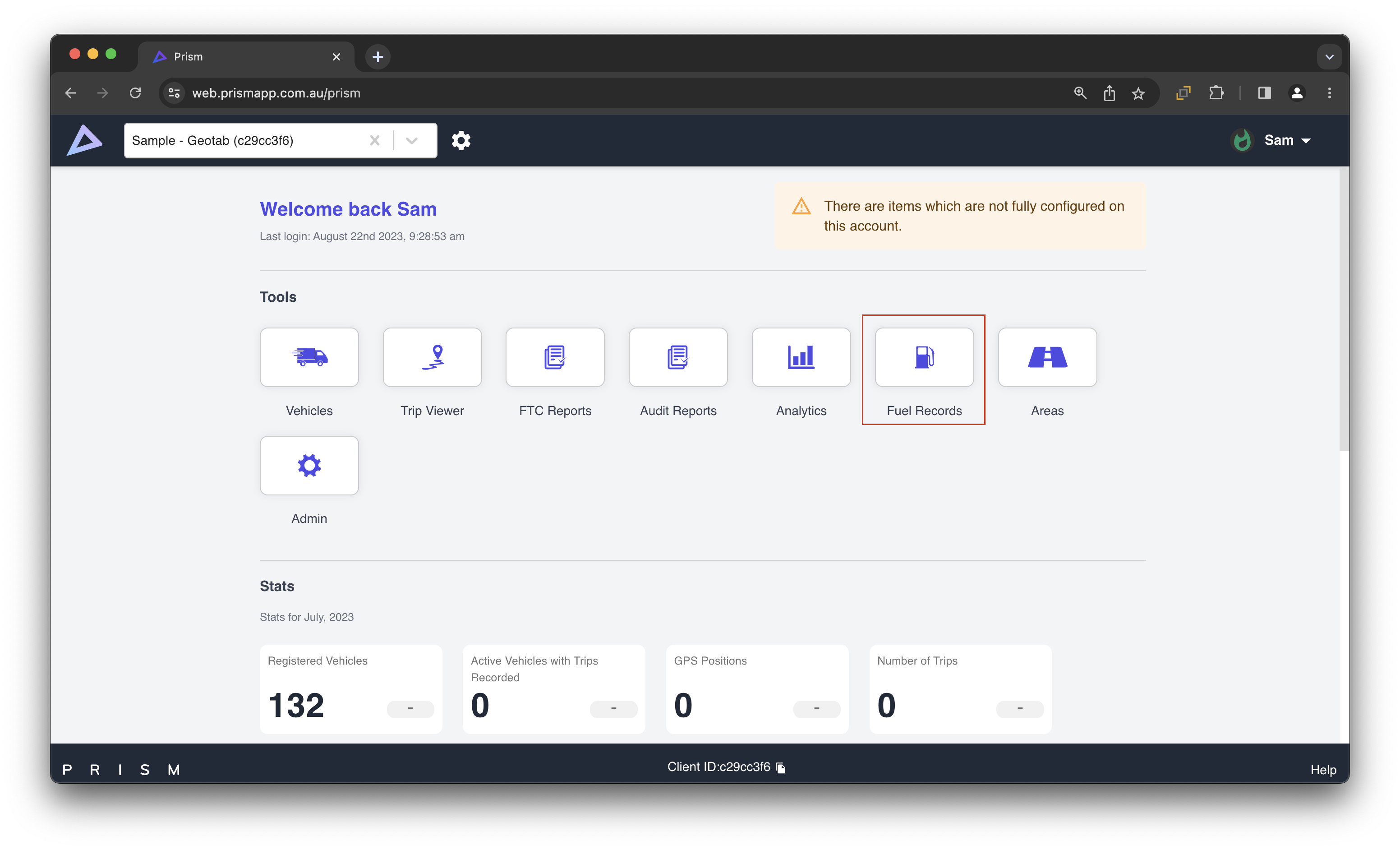 Once you have it enabled, you’ll then be able to access Fuel Records from the Prism home page: