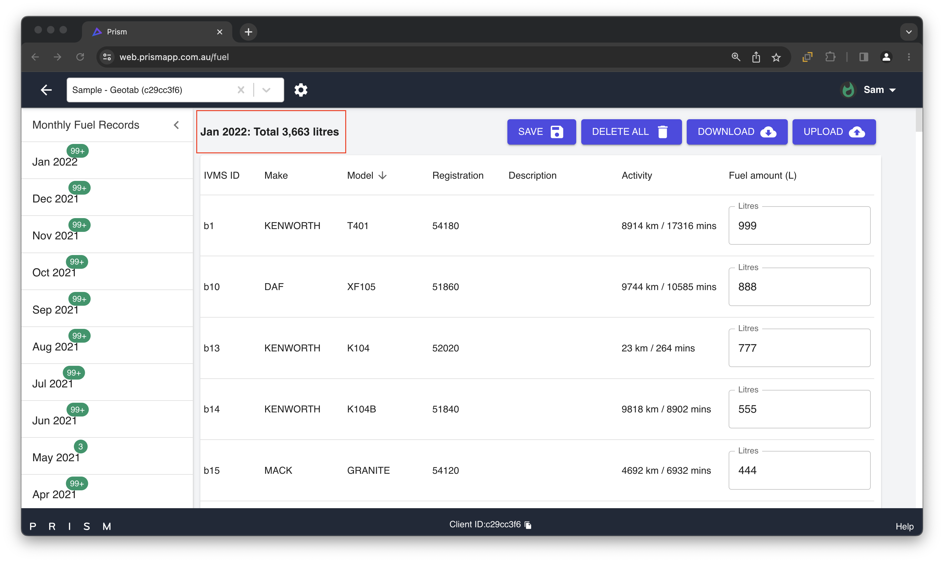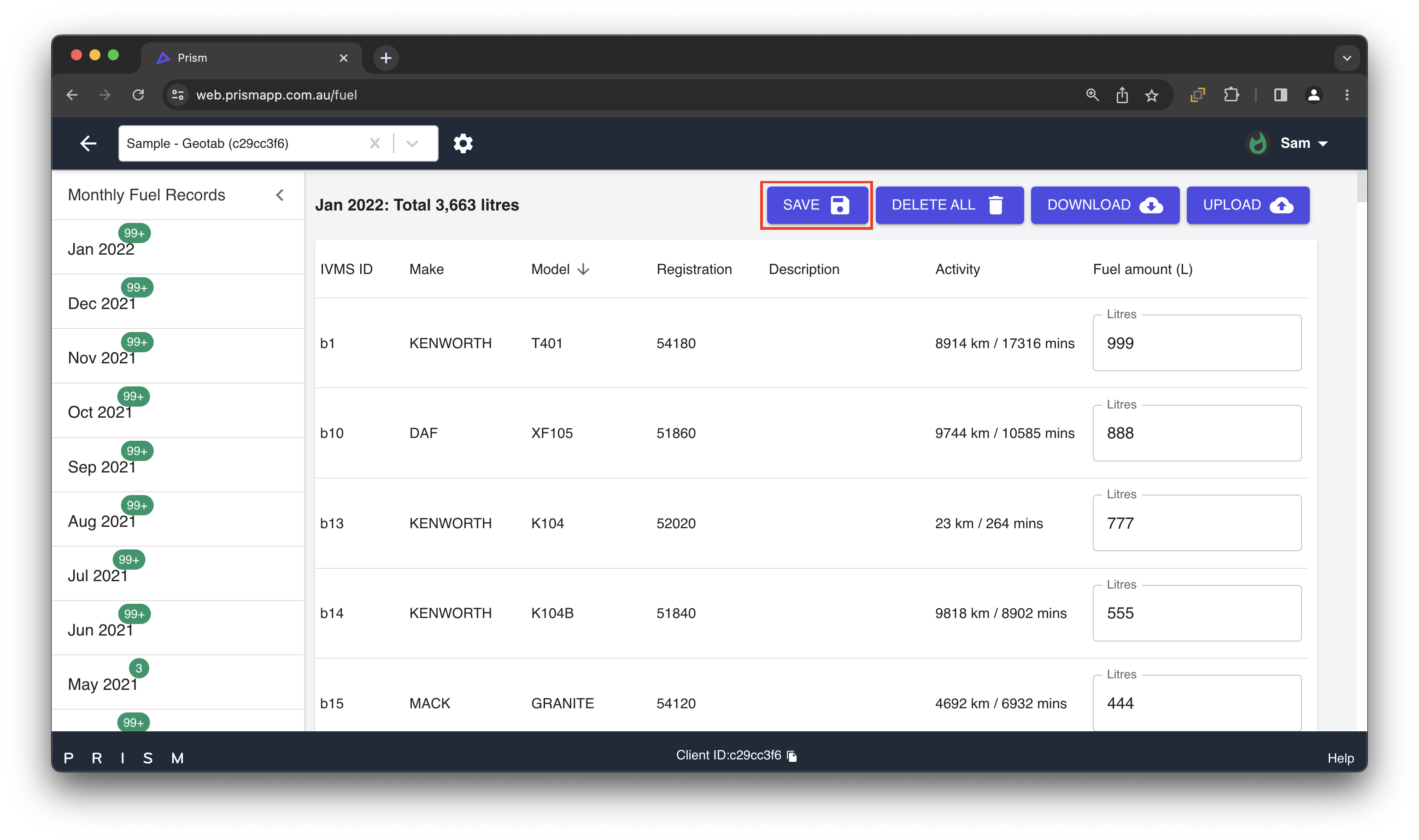 You will also need to regenerate and download your report/s once you have entered and saved your purchased fuel, in order for the updated fuel numbers to appears in your reports on your Prism web portal account.