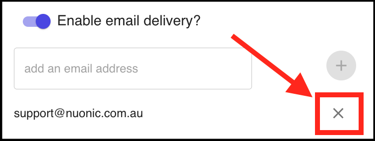 Use the x (cross) button to remove an email address.
