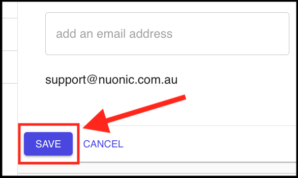 Use the + (plus) button to add an email address, or multiple email addresses.
