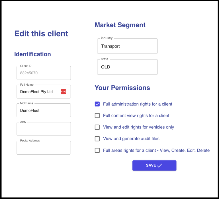 When you click on a client that you’re linked to within Client Management (see Screenshot 18 - Editing a Client), this will bring up editable details on the right side of the menu.