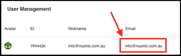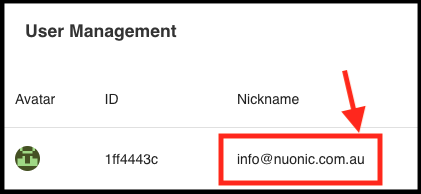 Each user will have their nickname displayed against their profile. In this example above (Screenshot 11 - Nickname), the default nickname is set to the email address.