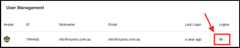 This is where you will see the number of times a user has logged in.