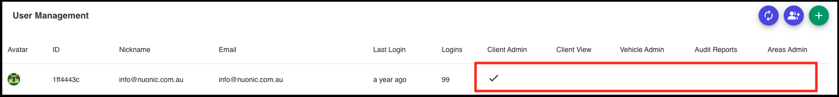 This is where you will see the level of access that each user has.